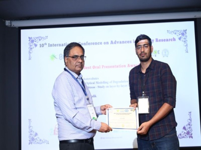 Mr. ASHISH MALIK, a PhD student from the Department of Physics, has been honoured with the Best Oral Presentation Award at 'The 10th International Conference on Advances in Energy Research (ICAER)'