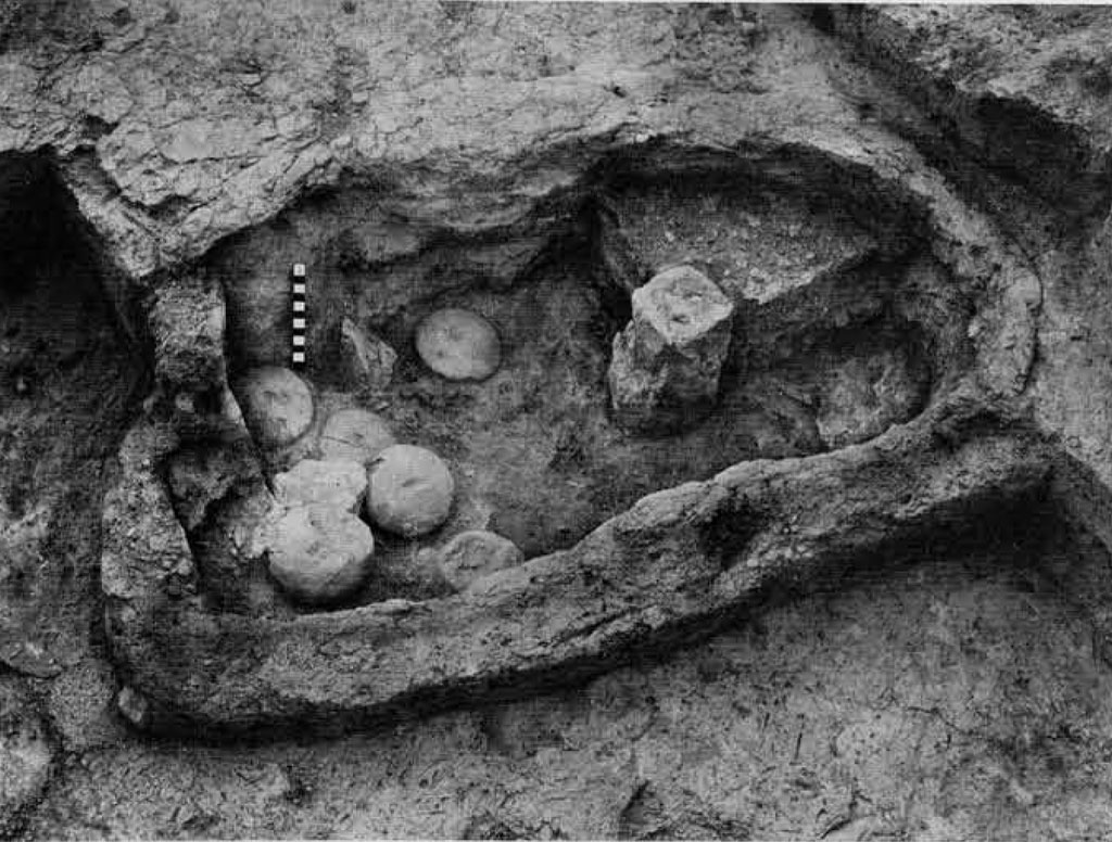 In the first figure, the right side near semi-circle is likely to be the Dakshinagni while the lowermost altar should be the Garhapatya. I interpret the complex firealtar above the Garhapatya to be representation of the various features between summer and winter solstice shadows shown in the previous computer generated graph, specially if a stone pillar was erected instead of a stick. The next figure appears to corroborate this argument.