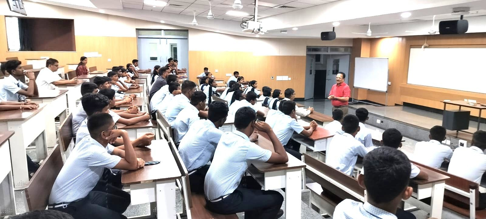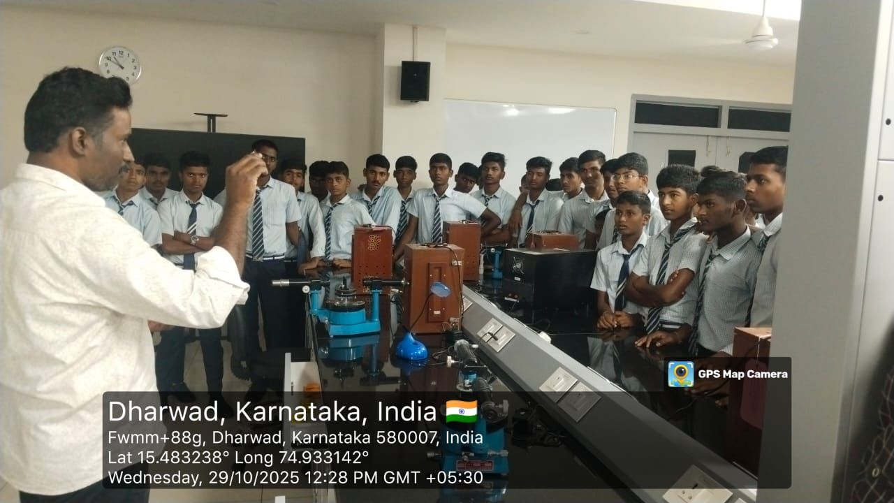 During the engaging session, Prof. Jayakumar motivated students on effective study habits, preparation strategies for JEE, and the importance of cultivating a consistent reading habit. He also highlighted the uniqueness of dhArwAD and its rich linguistic and cultural heritage. The session concluded with an interactive Q&A where students actively participated. As part of the outreach visit, the students also explored various academic facilities at IIT dhArwAD, including the Indoor Common Facility, Computer Science, Chemistry, EECE, Physics, Biotechnology, Civil and Infrastructure Engineering (CIE) laboratories and the Central Learning Theater.