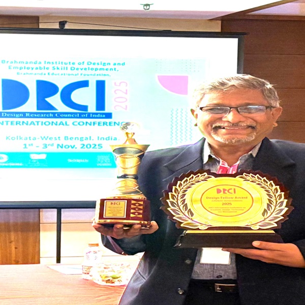 Prof. Pradeep Yammiyavar, Visiting Sr. Adjunct Professor of Civil-Infra; MMAE & HEART Departments was conferred with a ‘Lifetime achievement Award’ with Fellowship of the DRCI- Design Research Council-India on 1st Nov. 2025 at Kolkata. This was in recognition of his 40 years of dedication to Design education especially for being a pioneer of Design Research & Useability Engineering programs in India. He is currently involved in teaching Product Innovation & Design Thinking courses at IIT Dharwad.