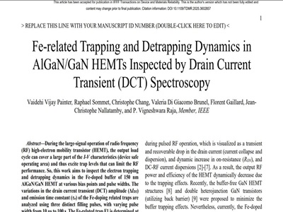 We are pleased to inform our Joint publication between XLIM Laboratory France and UMS – United Monolithic Semiconductor, entitled “Fe-Related Trapping and Detrapping Dynamics in AlGaN/GaN HEMTs Inspected by Drain Current Transient (DCT) Spectroscopy”