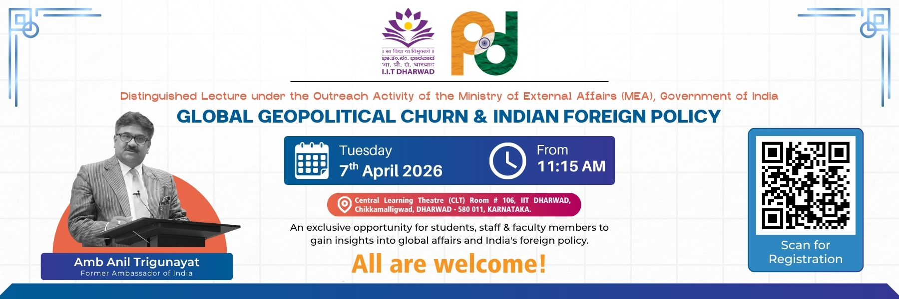 Indian Institute of Technology DHARWAD(IITDH) is one of the third Generation (3-G) IITs, which were established by the Ministry of Education (MoE), Government of India (GoI)....