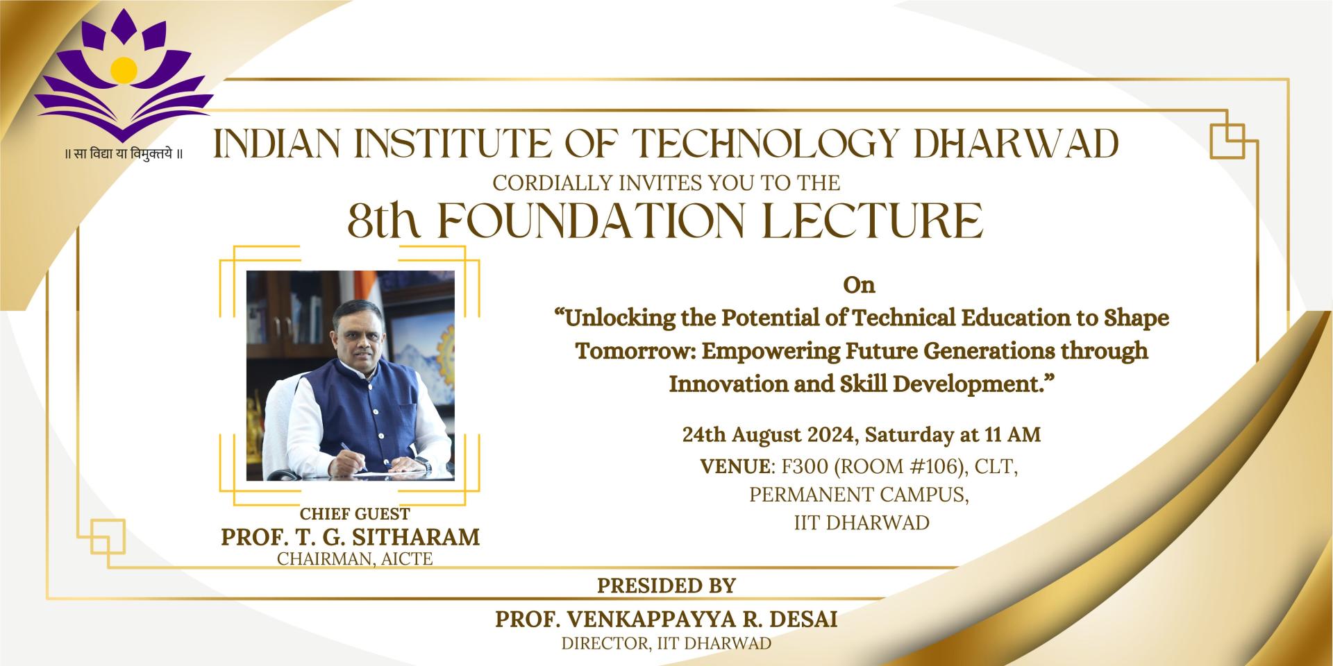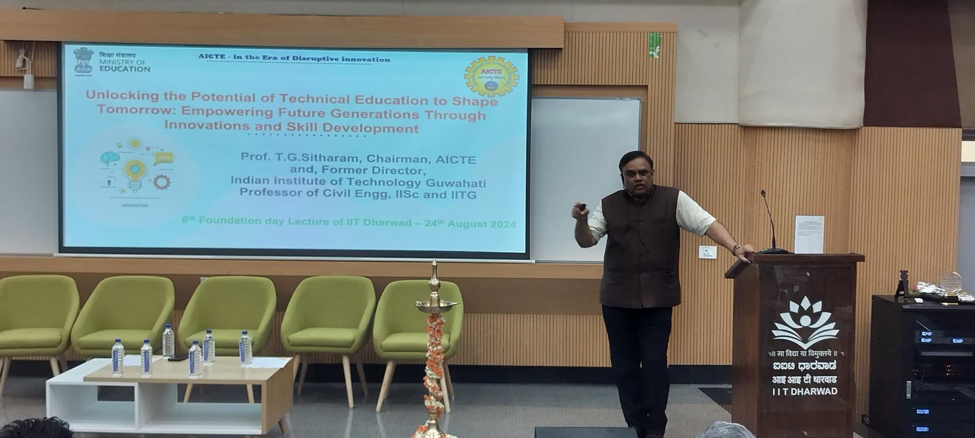 IIT Dharwad proudly celebrated its 8th Foundation Day with a thought-provoking lecture by Prof. T. G. Sitharam, Chairman of AICTE, on "Unlocking the Potential of Technical Education to Shape Tomorrow." Prof. Sitharam's insights on innovation & skill development were inspiring.