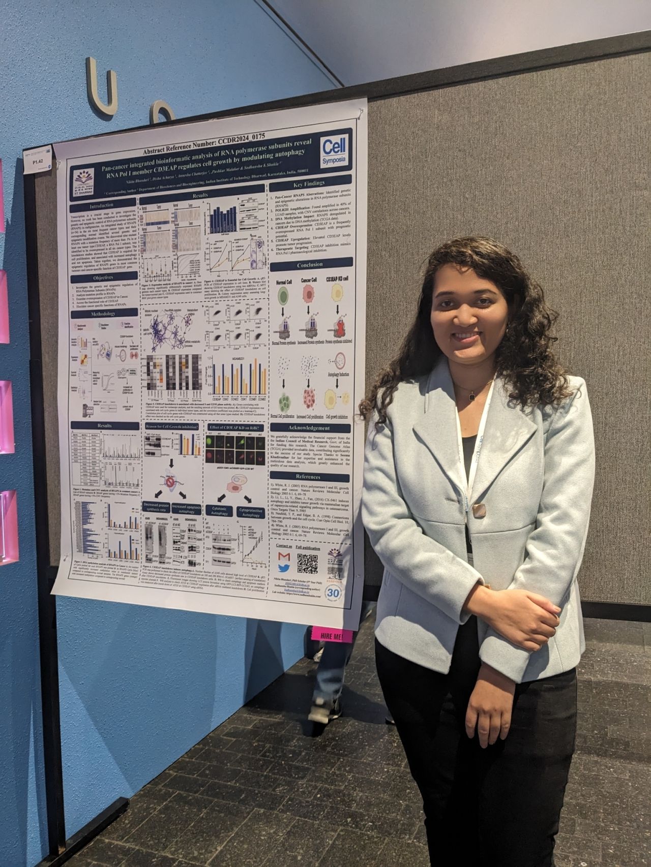 Congratulations to Ms. Nikita Bhandari, Research Scholar in the Biosciences and Bioengineering Department, IIT dhArwAD, on presenting her PhD research at the prestigious Cell Symposia conference, hosted by the University of California, San Francisco, USA. Ms. Nikita's presentation, titled "Pan-cancer integrated bioinformatic analysis of RNA polymerase subunits reveal RNA Pol I member CD3EAP regulates cell growth by modulating autophagy," delved into advancements in Cancer Biology.