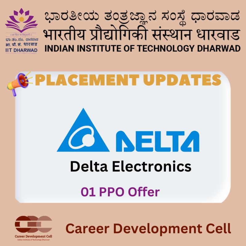 Congratulations to the MTech student who secured a full-time role with Delta Electronics India Pvt Ltd before completing the internship! Best example for hard work and dedication. Best wishes for a successful career ahead!