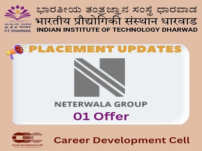Congratulations to the students who secured job offers with Neterwala Group during the campus placement drive conducted by Career Development Cell of IIT Dharwad.