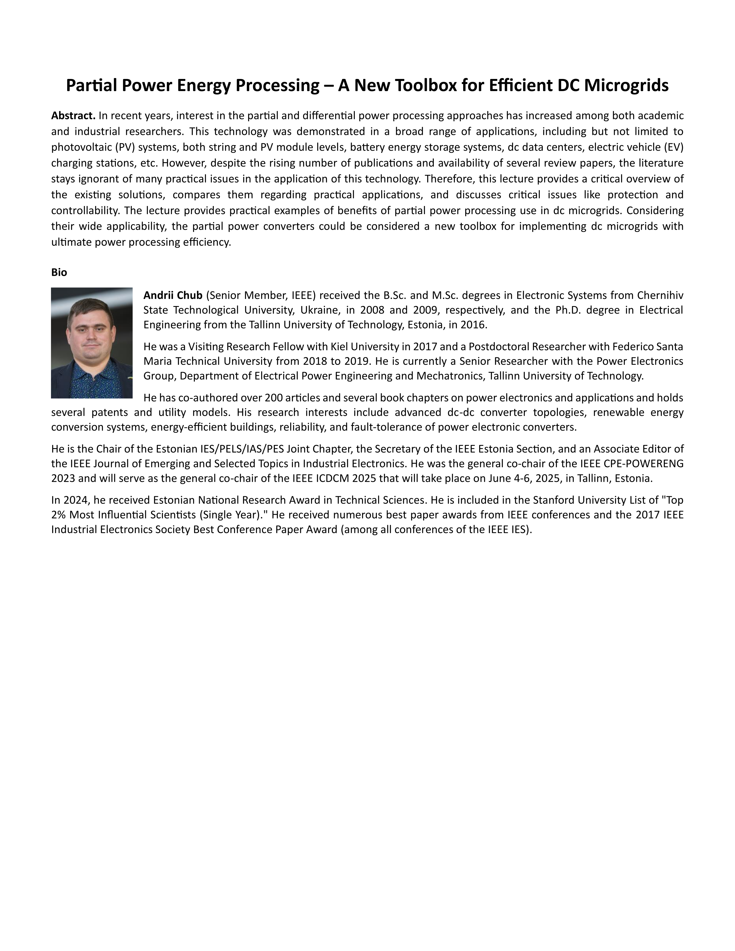 Lecture Topic: "Partial Power Energy Processing – A New Toolbox for Efficient DC Microgrids".