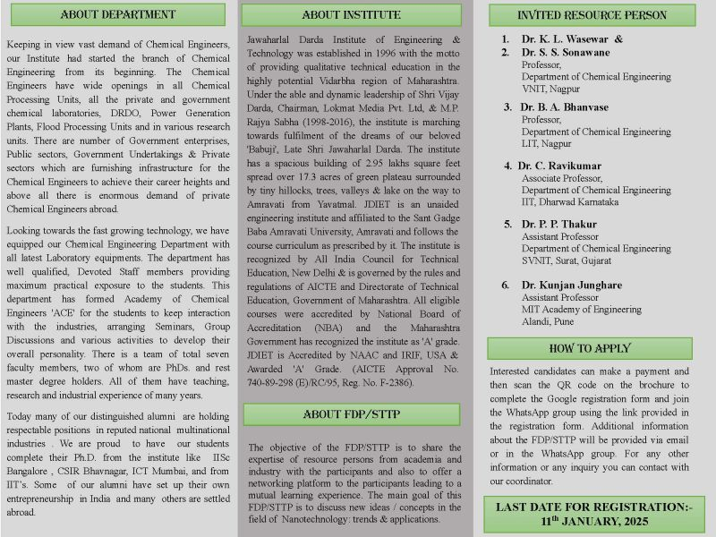 Dr. Ravikumar C, Associate Professor in the Department of Chemical Engineering, served as a resource person for the Online Short-Term Training Program (STTP) & Faculty Development Program (FDP) on "Nanotechnology: Trends and Applications" organized by Jawaharlal Darda Institute of Engineering & Technology, Yavatmal, in association with ISTE from 13th to 18th January 2025.