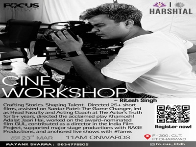 CineWorkshop–filmmaking workshop with Ritesh Singh, a visionary director from India’s film capital! Having directed 25+ short films, assisted on Sardar Patel: The Game Changer, led The Actor’s Truth as Head Faculty,contributed to award-nominated projects.