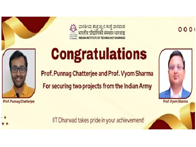 Congratulations to Prof. Punnag Chatterjee, PhD and Prof. Vyom Sharma from IIT Dharwad for securing two prestigious projects from the Indian Army! Their expertise and dedication continue to contribute to cutting-edge research with real-world impact.
