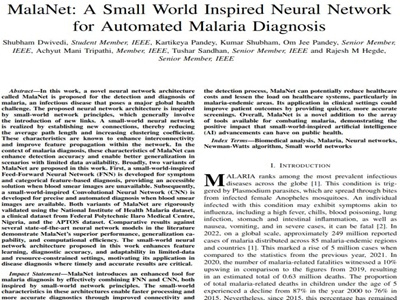 We are excited to announce that a recent work on Deep Model Compression, titled "MalaNet: A Small World Inspired Neural Network for Automated Malaria Diagnosis," from the Department of Computer Science and Engineering, IIT Dharwad.