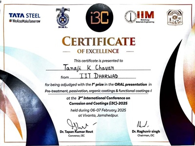 Mr. Tanaji K. Chavan, a PhD scholar under the guidance of Dr. Sushanta Sethi in the Dept. of Mechanical, Materials & Aerospace Engineering, recently presented his research on "Eco-friendly polylactic acid/beeswax based superhydrophobic self-clean coating"