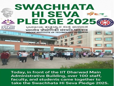 Swachhata Hi Seva Pledge 2025 at IIT Dharwad 🌿✨ In front of the IIT Dharwad Main Administrative Building, more than 100 staff, faculty, and students united to take the Swachhata Hi Seva Pledge 2025. 🧹