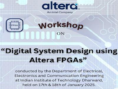 The Workshop on Digital System Design using Altera FPGAs,organized by the Department of Electrical, Electronics and Communication Engineering at Indian Institute of Technology Dharwad, was successfully conducted on 17th & 18th January 2025 at IIT Dharwad.
