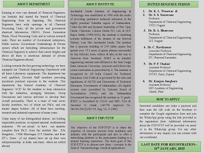 Dr. Ravikumar C, Associate Professor in the Department of Chemical Engineering, served as a resource person for the Online Short-Term Training Program (STTP) & Faculty Development Program (FDP) on "Nanotechnology: Trends and Applications"