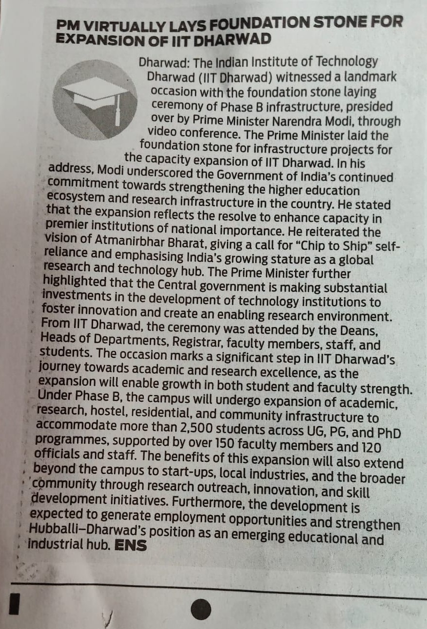 Prime Minister Narendra Modi on Saturday, virtually laid the foundation stone for Phase B works at the Indian Institute of Technology, Dharwad (IIT-Dh)