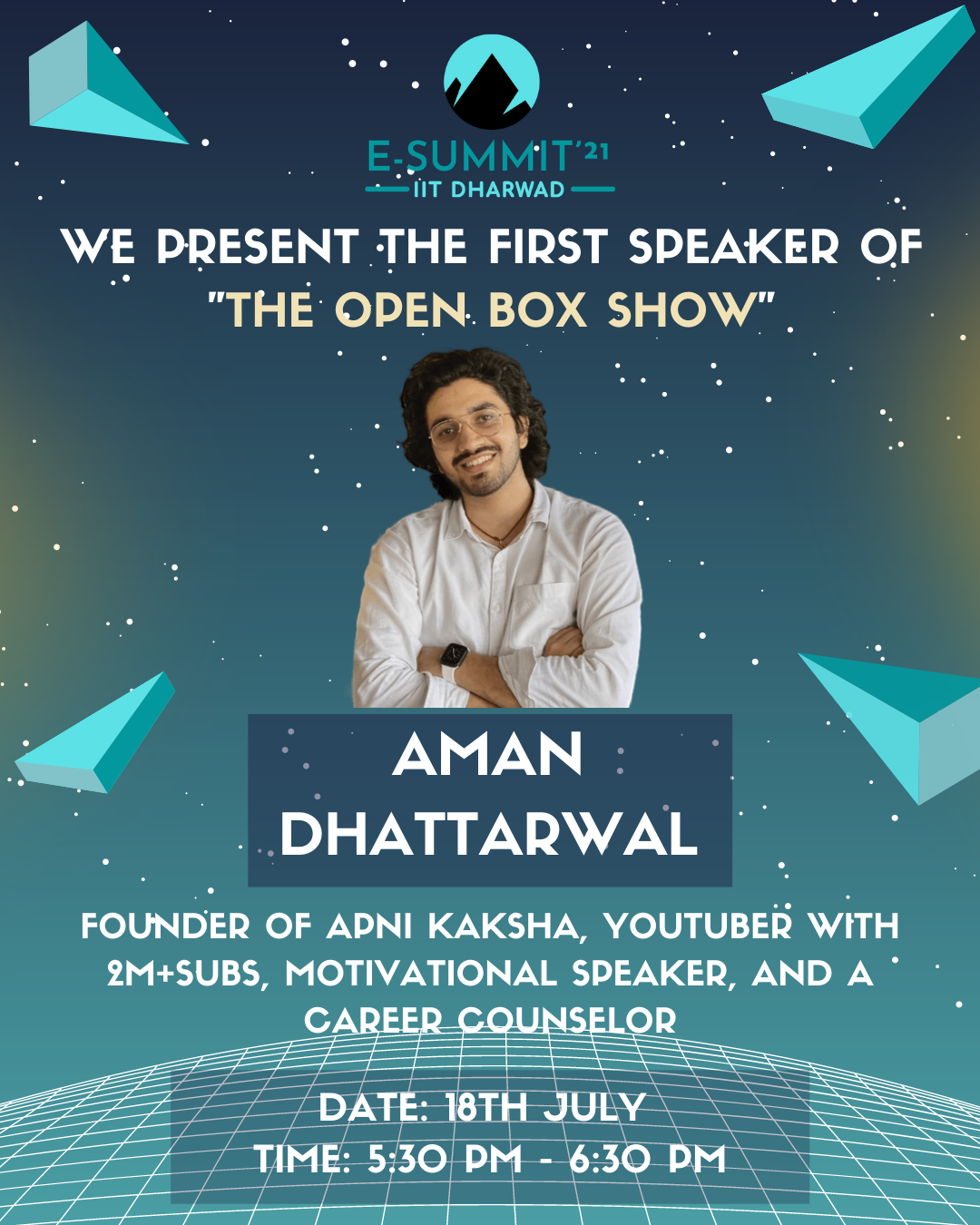 The Institute Innovation Council is on its way to host IIT Dharwad’s very first entrepreneurial fest “E-Summit 2021”, featuring well-known personalities who will provide an insight into many things, empowering students to foster and nurture their creative ideas, innovations, and unique talents.Get ready for three days of fun whilst being productive, take part in competitions, quizzes, amazing prizes, and much more, it'll be an engaging and competitive experience.