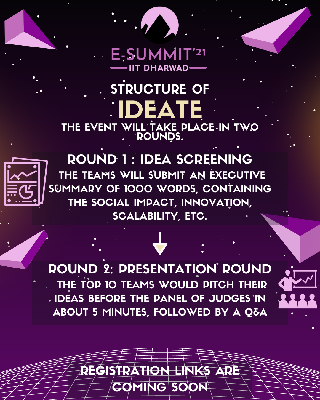 E-Summit'21 is the first entrepreneurial fest hosted by IIC, IIT Dharwad. Featuring well-known personalities, competitions, quizzes, amazing prizes, and much more. E-Summit will provide an insight into many things, empowering students to foster and nurture their creative ideas, innovations, and unique talents.