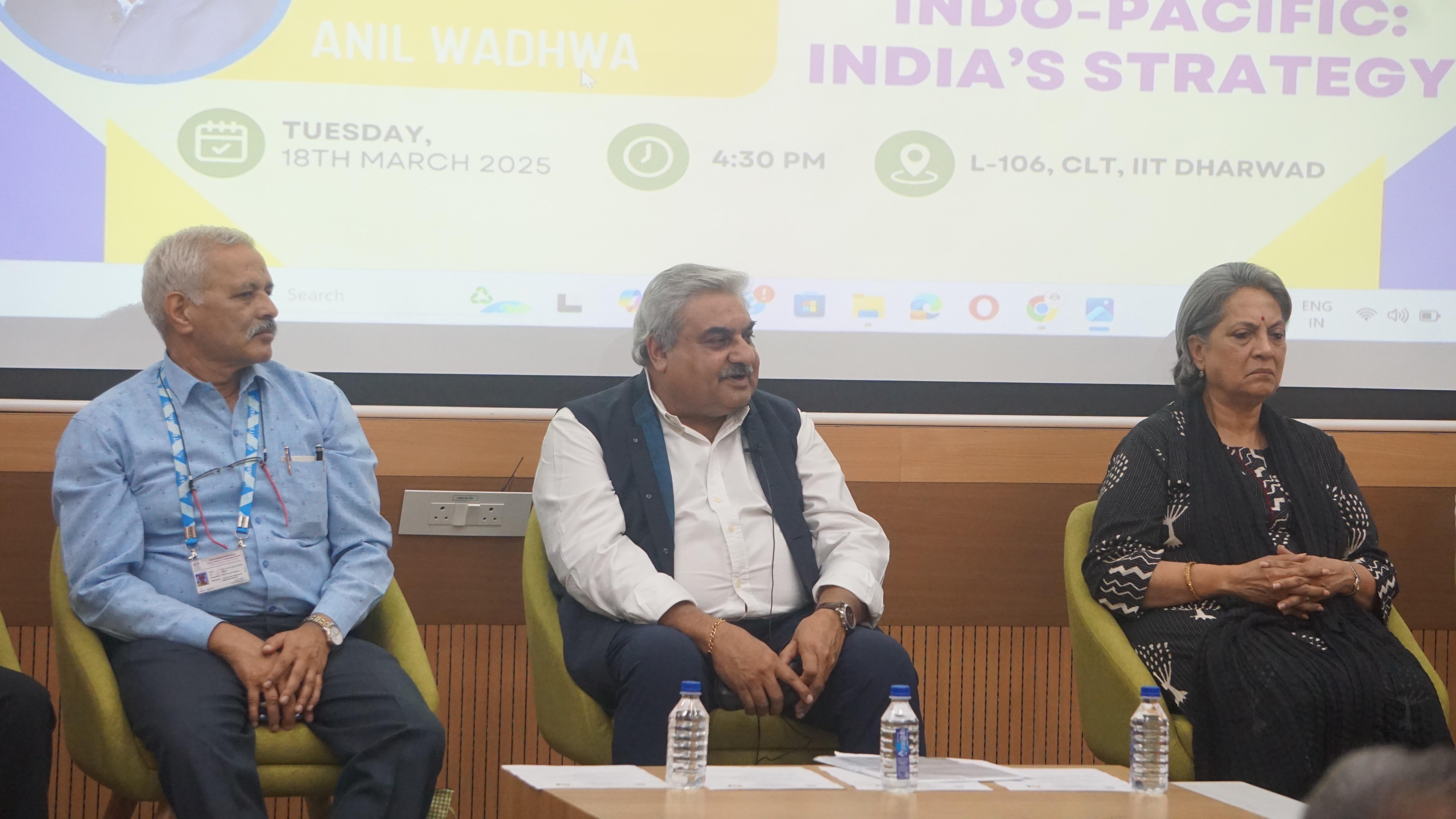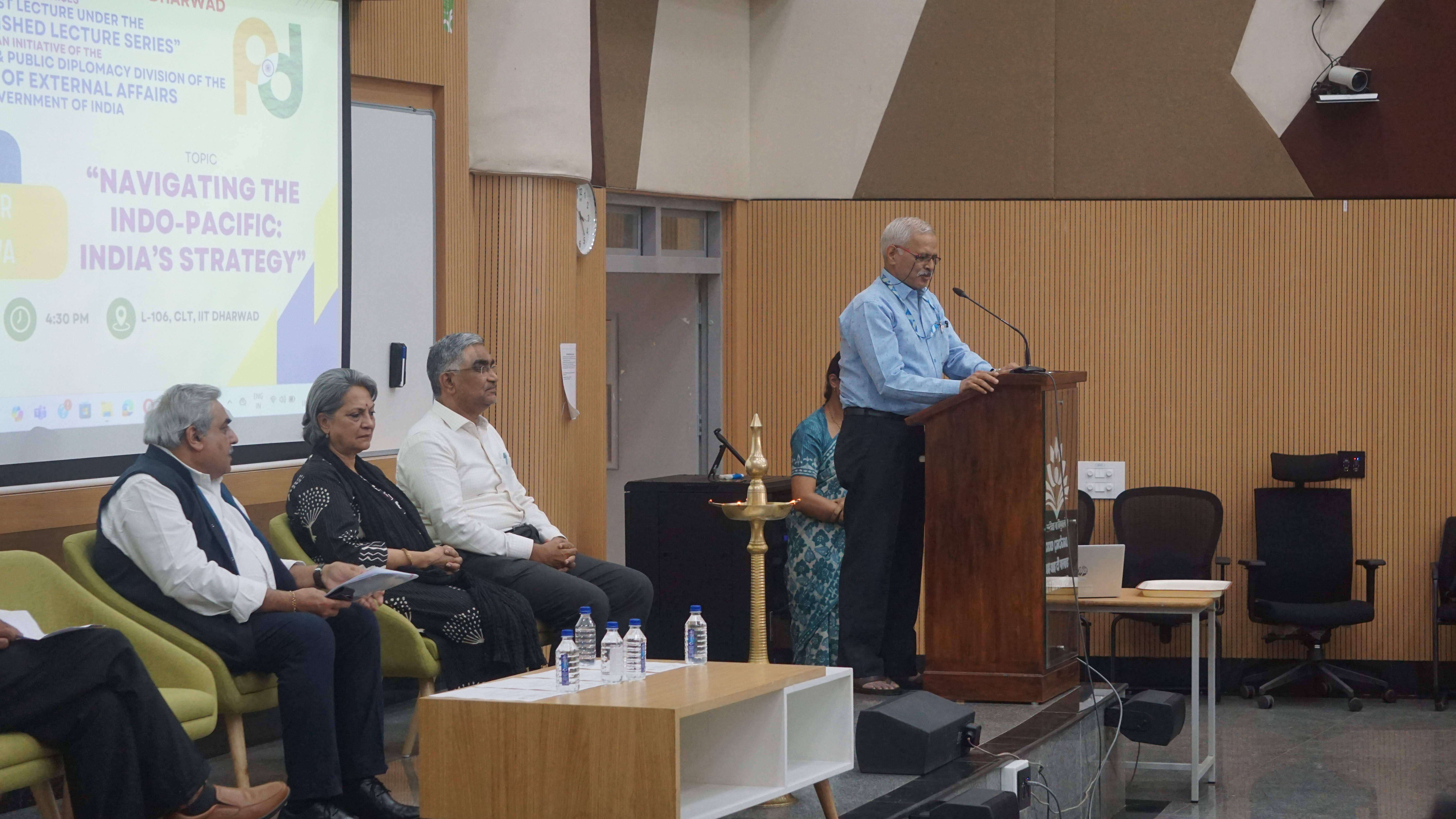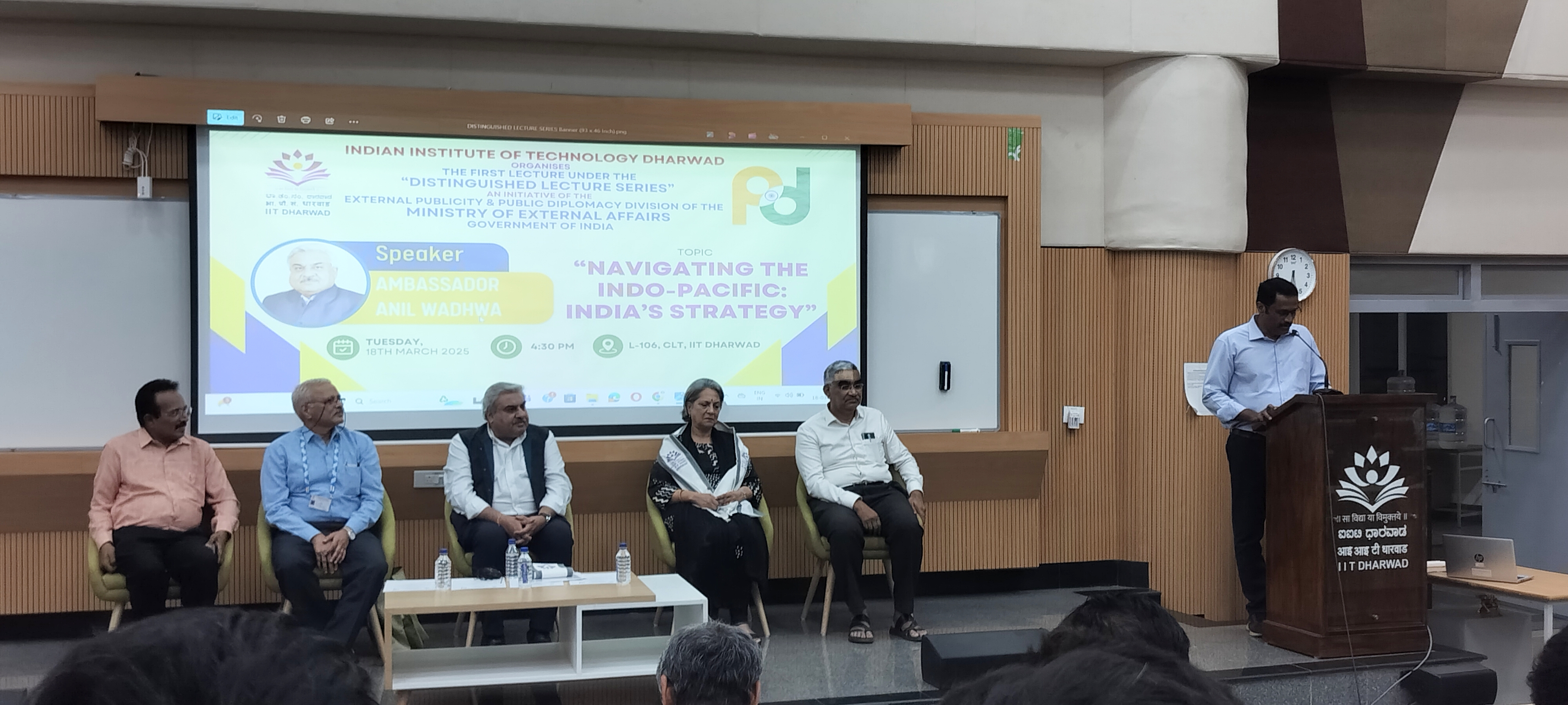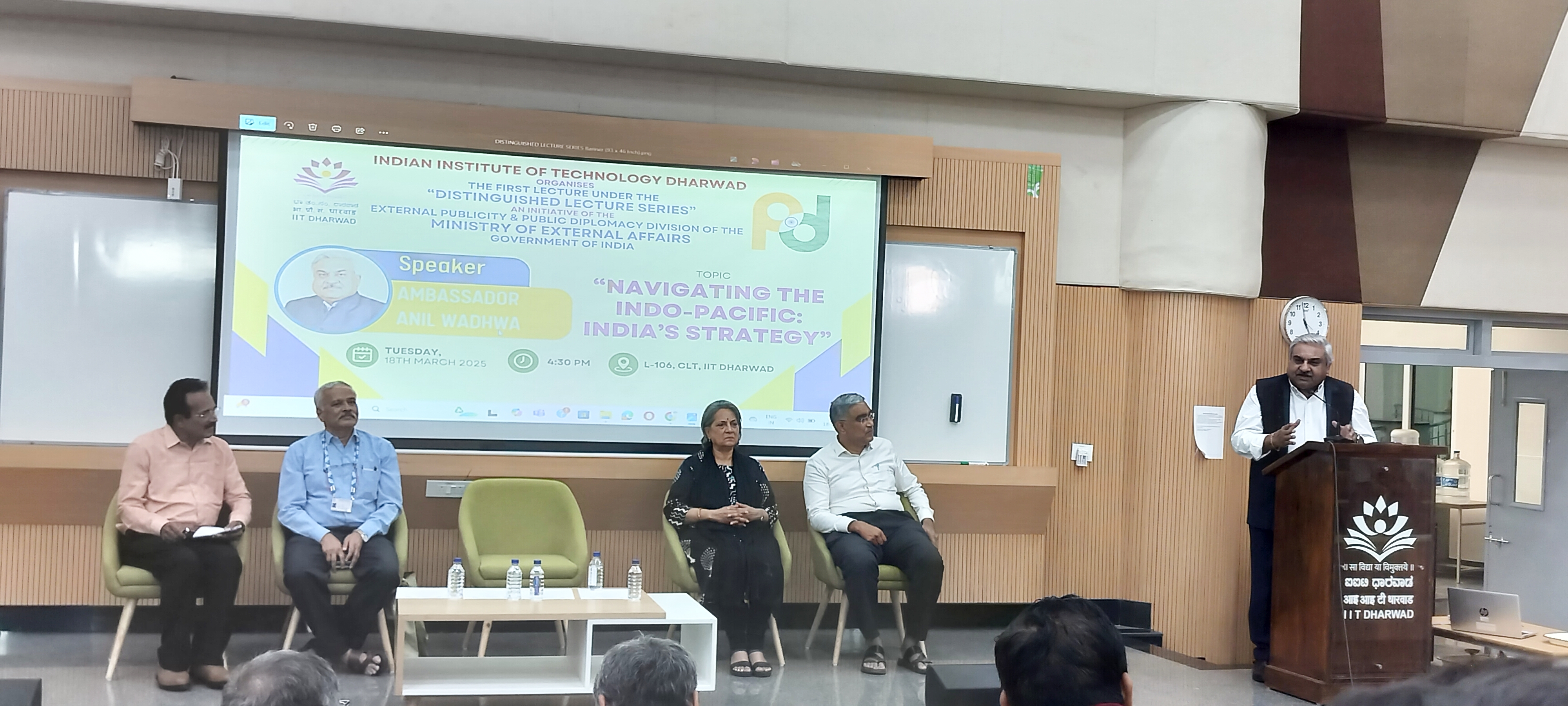 The Indian Institute of Technology Dharwad organized the first lecture under the “Distinguished Lecture Series,” an initiative of the External Publicity & Public Diplomacy Division of the Ministry of External Affairs, on “Navigating the Indo-Pacific: India’s Strategy” on March 18, 2025. The lecture was delivered by Ambassador Anil Wadhwa, Distinguished Fellow, Former Secretary (East), Ministry of External Affairs, and Ambassador of India to Italy, Thailand, Oman, Poland, Lithuania, and San Marino.