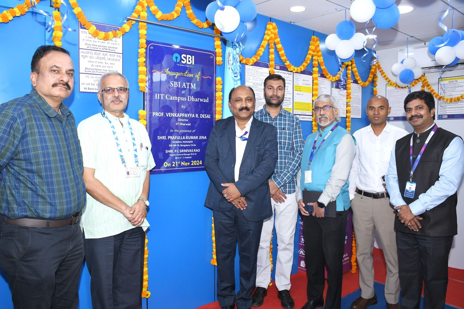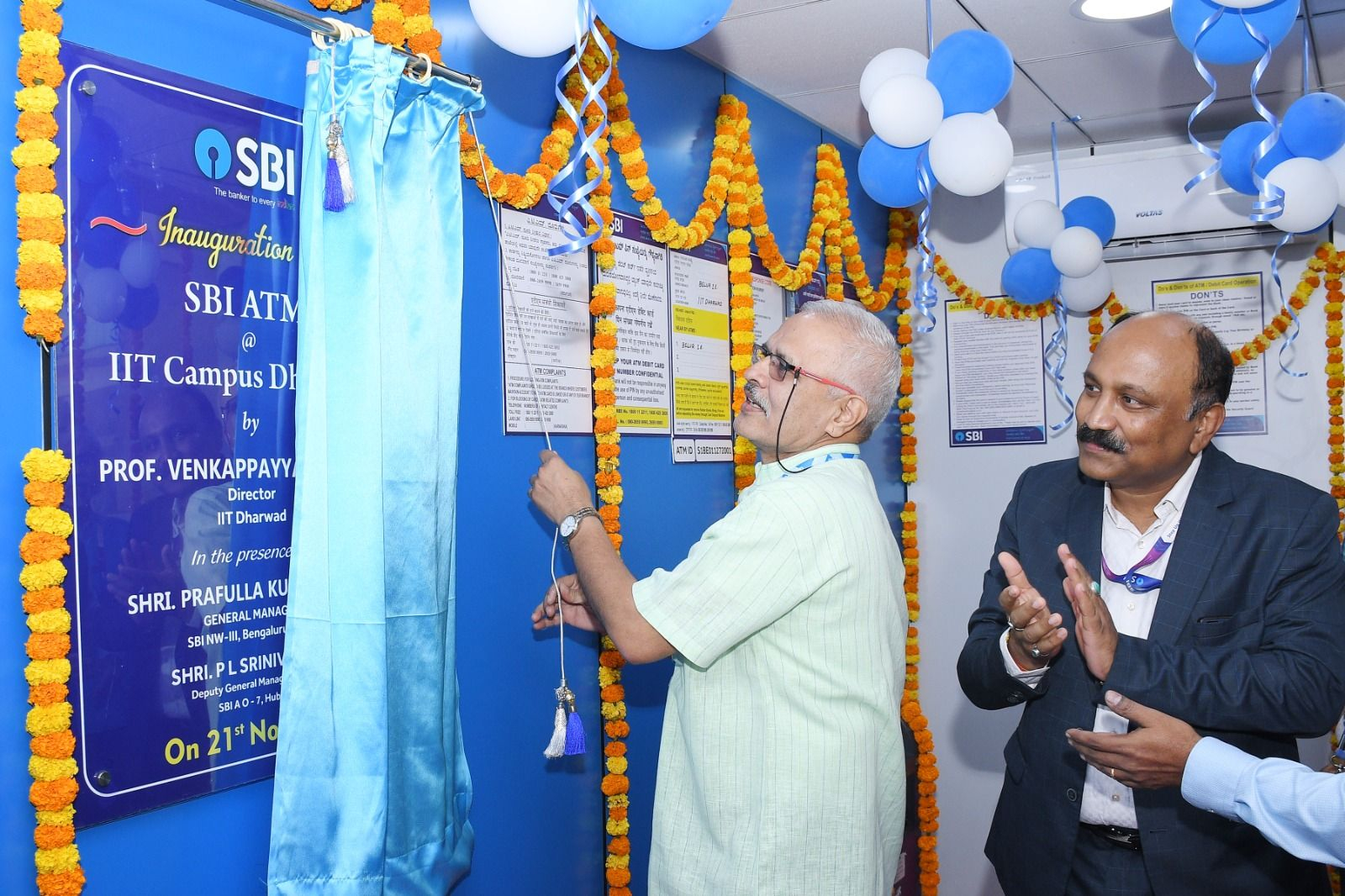 IIT Dharwad is pleased to announce the inauguration of SBI ATM on Dharwad Campus, enhancing banking convenience for students, faculty, and staff. The ATM was inaugurated by Prof. VenkappayyA R. dEsAi, Director, IIT Dharwad in the presence of Sri. Praffula Kumar Jena, General Manager (NW-III), SBI Bangalore, and Sri. PL Srinivas Rao, DGM (B&O), Hubballi. This initiative reflects our commitment to fostering seamless services for our community.
