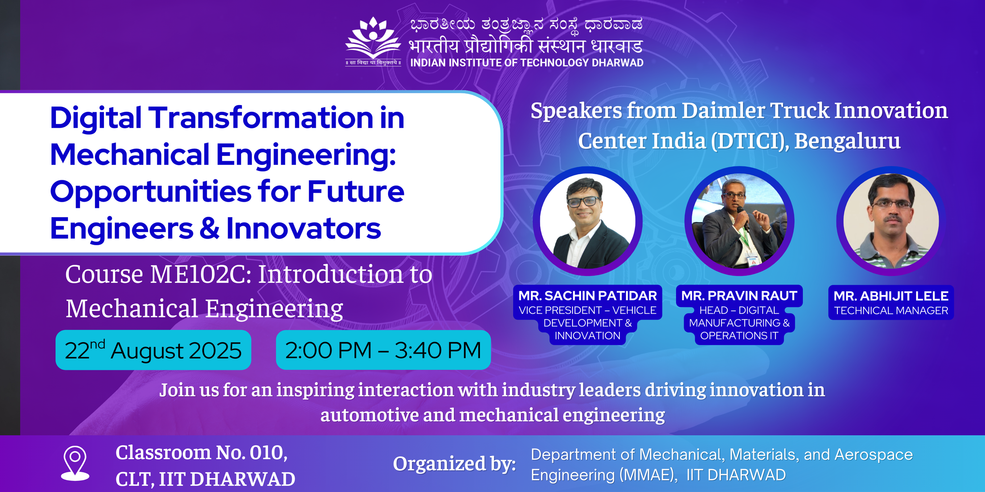 An inspiring session on Digital Transformation in Mechanical Engineering: Opportunities for Future Engineers & Innovators is scheduled with industry experts from Daimler Truck Innovation Center India (DTICI), Bengaluru.