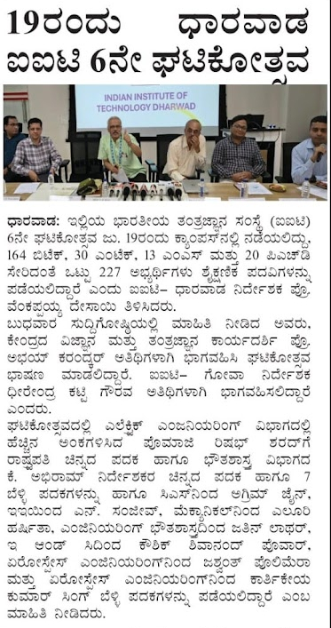 Addressing presspersons in Dharwad on Wednesday, Dean of Research and Development at IIT-Dh Pratyasa Bhui said that along with these projects, the institute has bagged consultancy projects worth ₹5 crore, ₹9.25 crore from CSR and ₹5 crore research initiation grants.