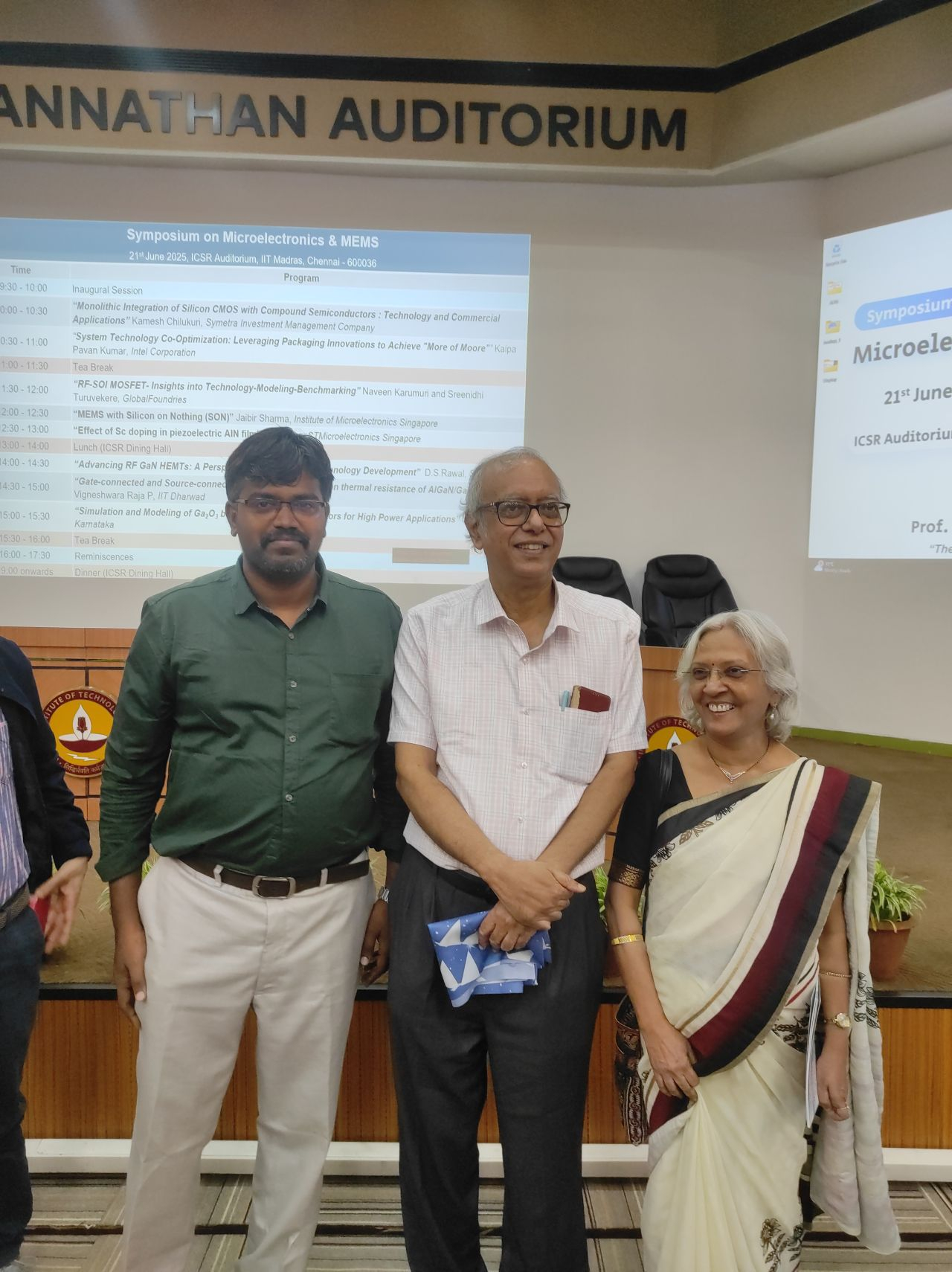 Prof. P. Vigneshwara Raja Raja delivered a talk on “Gate-connected and Source-connected field-plate influences on thermal resistance of AlGaN/GaN HEMTs” in the symposium on Microelectronics and MEMS in the “Honor of Prof. Amitava DasGupta”, held at IIT Madras on 21st June 2025.