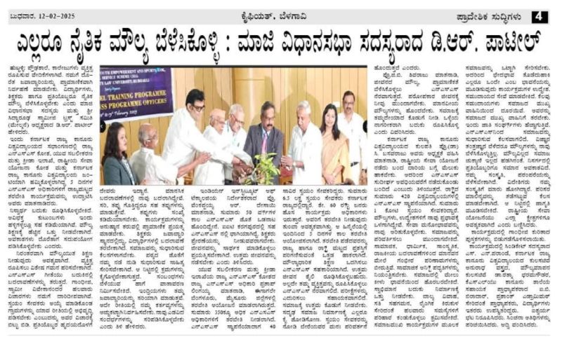 Prof. VenkappayyA R. dEsAi Desai, Director of IIT Dharwad, participated in the inauguration of a five-day training program organized at Karnataka State Law University and addressed the gathering. Reflecting on his 50+ years of experience, he recalled his participation in NSS at IIT Kharagpur and underscored the role of teachers as a source of inspiration. He encouraged individuals to pursue a meaningful life and lead with purpose.