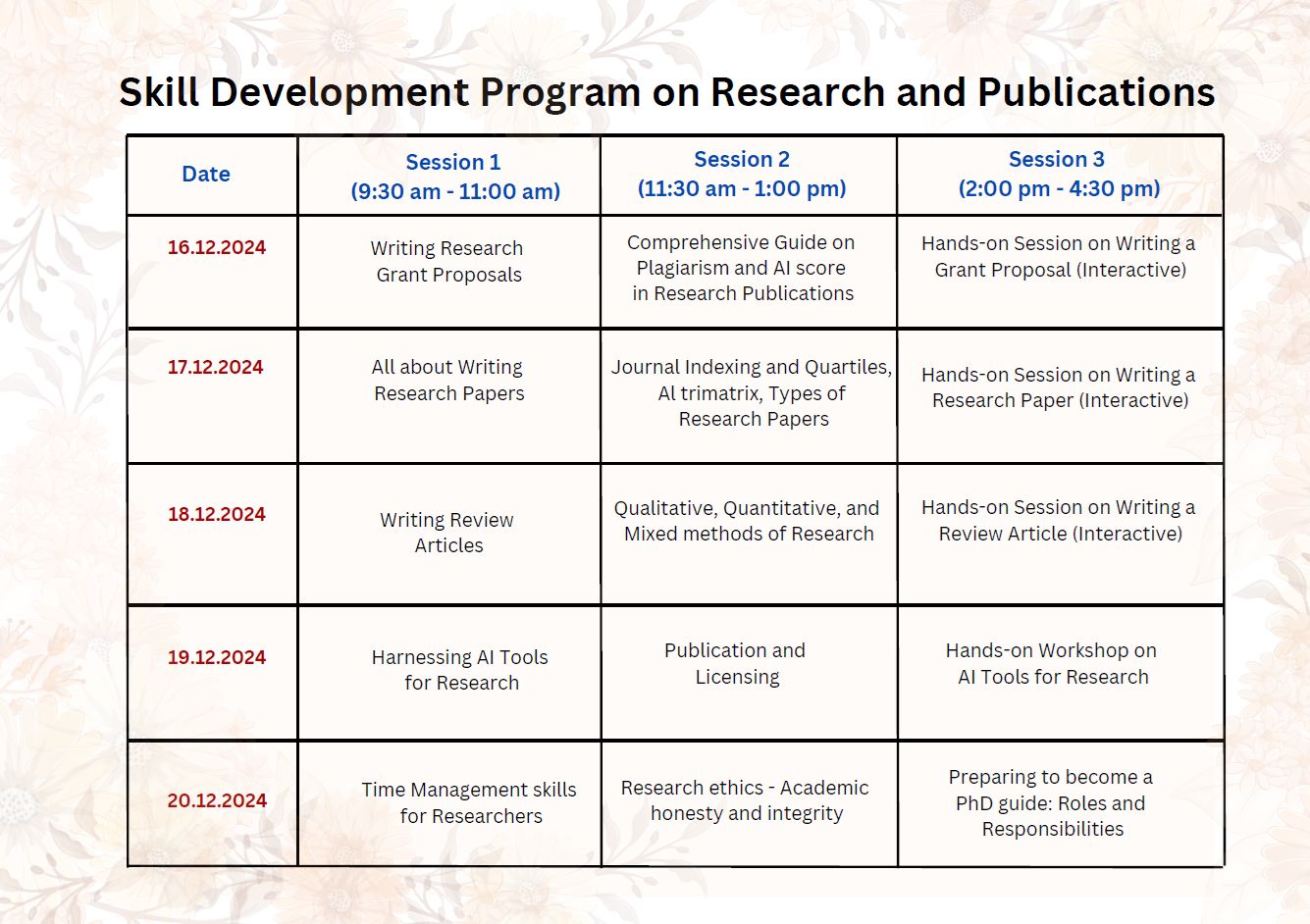 Skill Development Program (SDP) on Research and Publications: