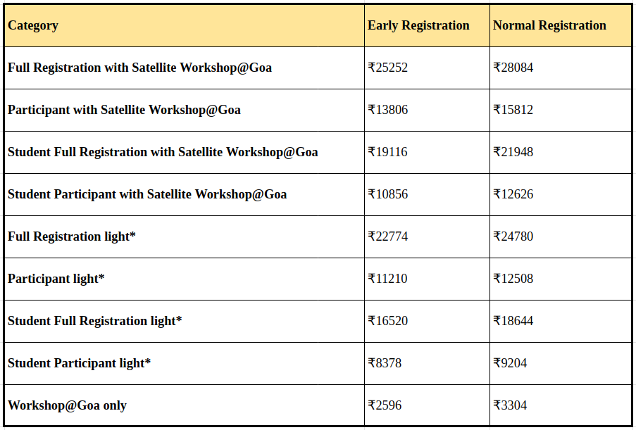 Travel and food arrangements will be made on the evening of the third day for participants attending the satellite workshop in Goa. Additional charges of ₹1000 per person will be collected for this service at the conference registration desk.Â