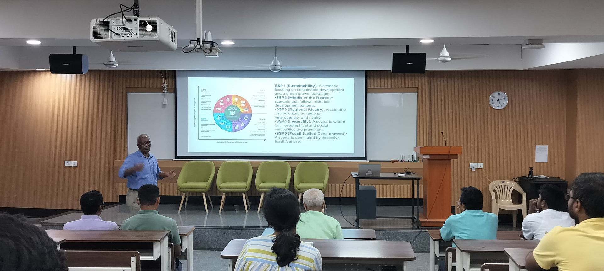 Dr. Venkatesh highlighted the theme for World Water Day 2025, “Glacier Preservation,” emphasizing the critical role glaciers play in sustaining freshwater supplies worldwide. He stressed the importance of conservation efforts in light of climate change. Later, he presented a comprehensive overview of various climate models and shared valuable insights on water availability in west-flowing rivers under different climate change scenarios. He discussed various Global Climate Models (GCMs) in the context of Shared Socioeconomic Pathways (SSPs). GCMs (General Circulation Models) are mathematical simulations of the Earth's climate system, while SSPs explore potential future global scenarios, focusing on societal, demographic, and economic factors that may influence greenhouse gas emissions and climate change. Dr. Venkatesh also presented case studies conducted by his research group. The program concluded with an engaging and interactive Q&A session.